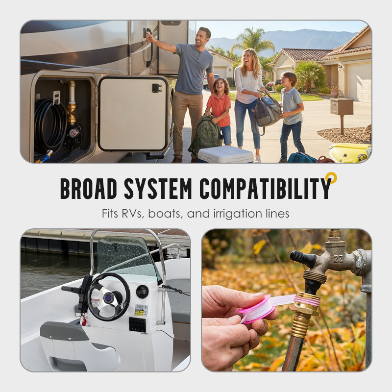 UNIVERZÁLIS KOMPATIBILITÁS – Szabványos csatlakozásának köszönhetően könnyen csatlakoztatható a legtöbb lakóautó és kerti tömlő vízcsatlakozásához. Ez a sokoldalúság teszi nélkülözhetetlen eszközzé nemcsak lakóautók, hanem hajók és öntözőrendszerek számára is.