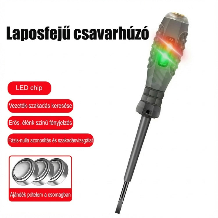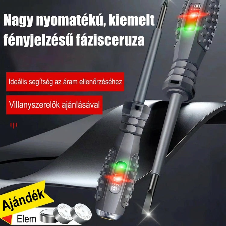 ⚡【Használat】 - Ha feszültségvizsgáló szondát használ, a vizsgálat előtt egy csavarhúzót kell az aljába dugni, és az ujját a fogantyú végére rögzíteni. Ha van áram, a neoncső világítani fog és biztonságosan működik.