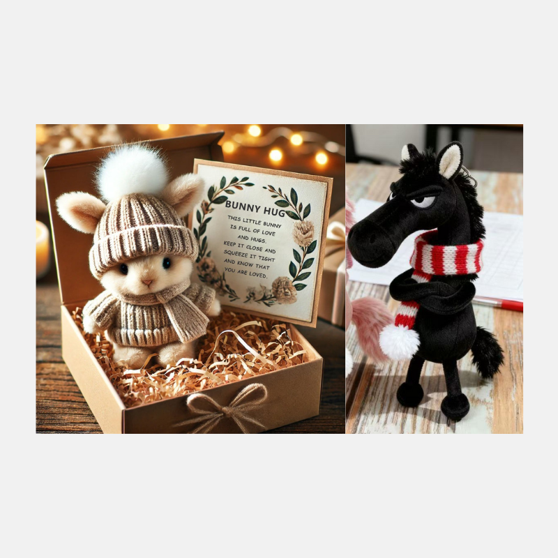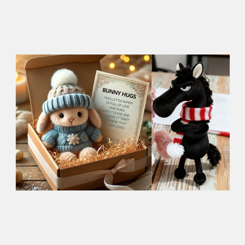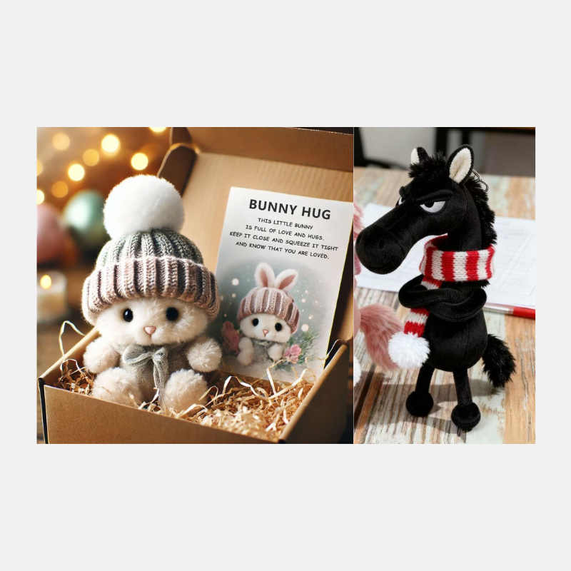đBĂĄjos dĂszdobozba rejtve, puha aprĂtott papĂrral körĂŒlvĂ©ve, ez a nyuszi kĂ©szen ĂĄll arra, hogy feldobja valaki napjĂĄt. AkĂĄr messzirĆl kĂŒld ölelĂ©st, akĂĄr egy pillanatnyi melegsĂ©get ajĂĄndĂ©koz, ez a kis haver a szeretet Ă©s a megnyugvĂĄs szĂvbĆl jövĆ ĂŒzenetĂ©t hordozza.