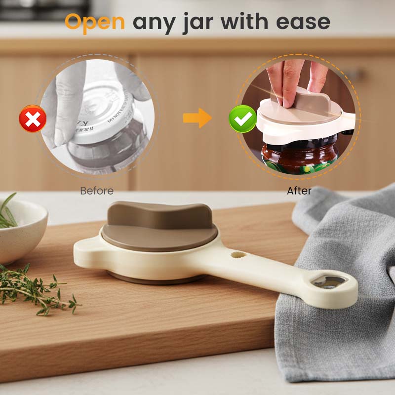 ÁLLÍTHATÓ ÜVEGNYITÓ: Könnyedén megfogja és kinyitja a legkülönbözőbb üvegek fedeleit, a kis fűszeres üvegektől a nagy savanyúságos üvegekig, így nem kell többé küszködnie a konyhában a makacs, szorosan lezárt edényekkel.