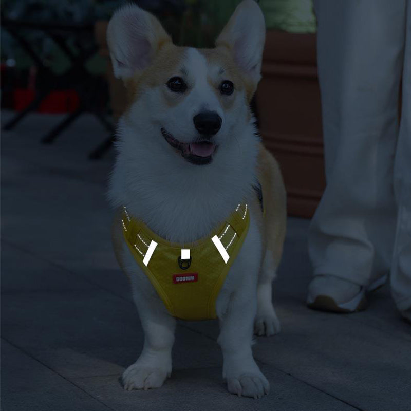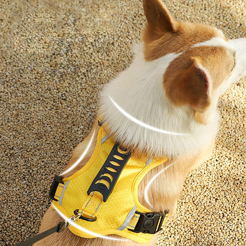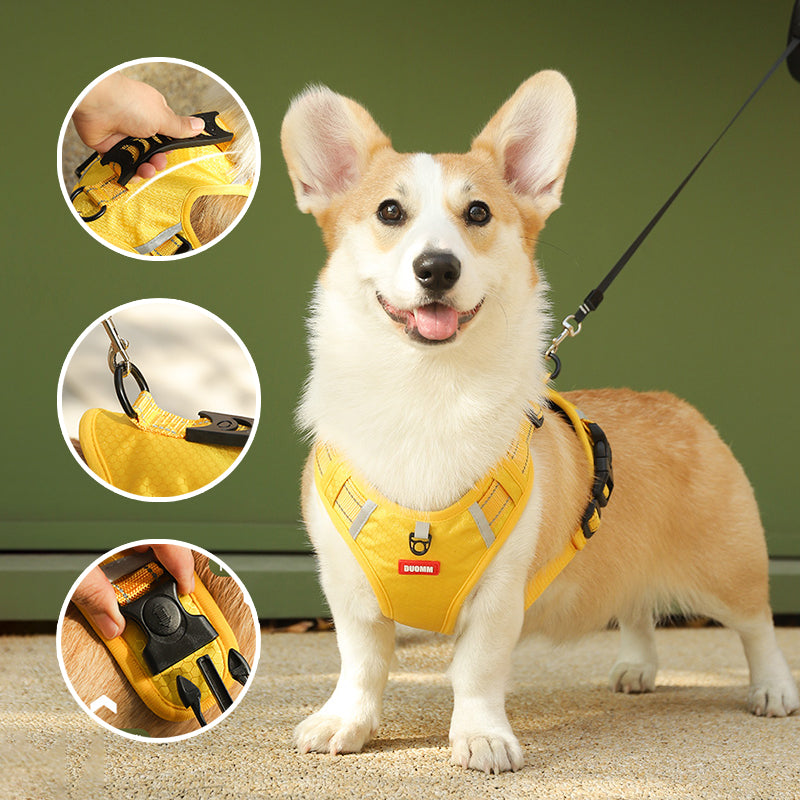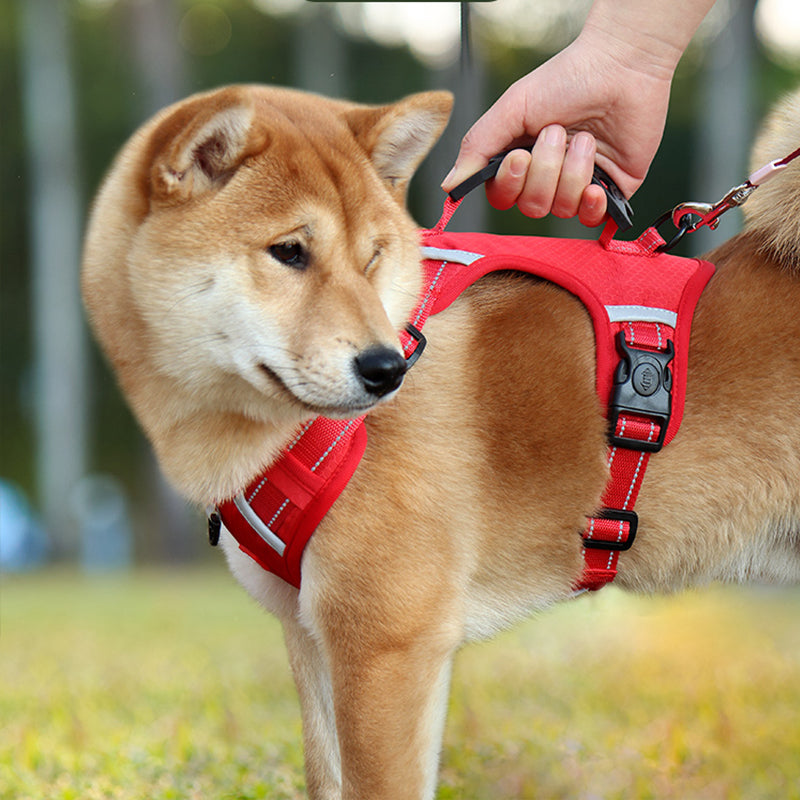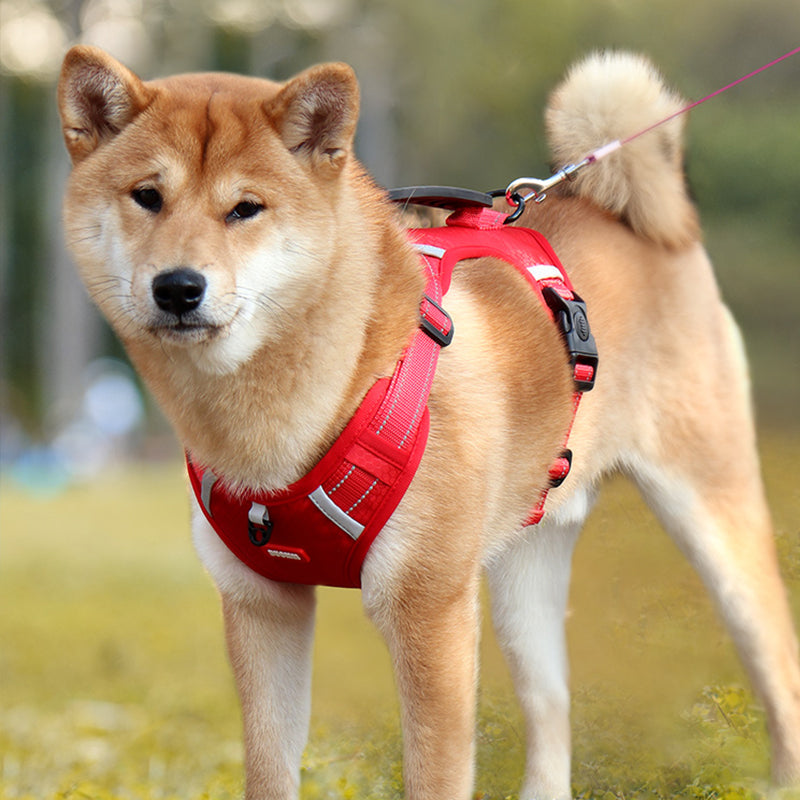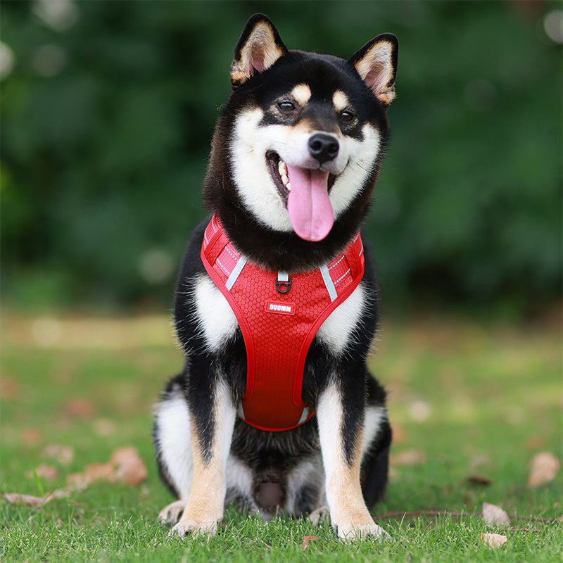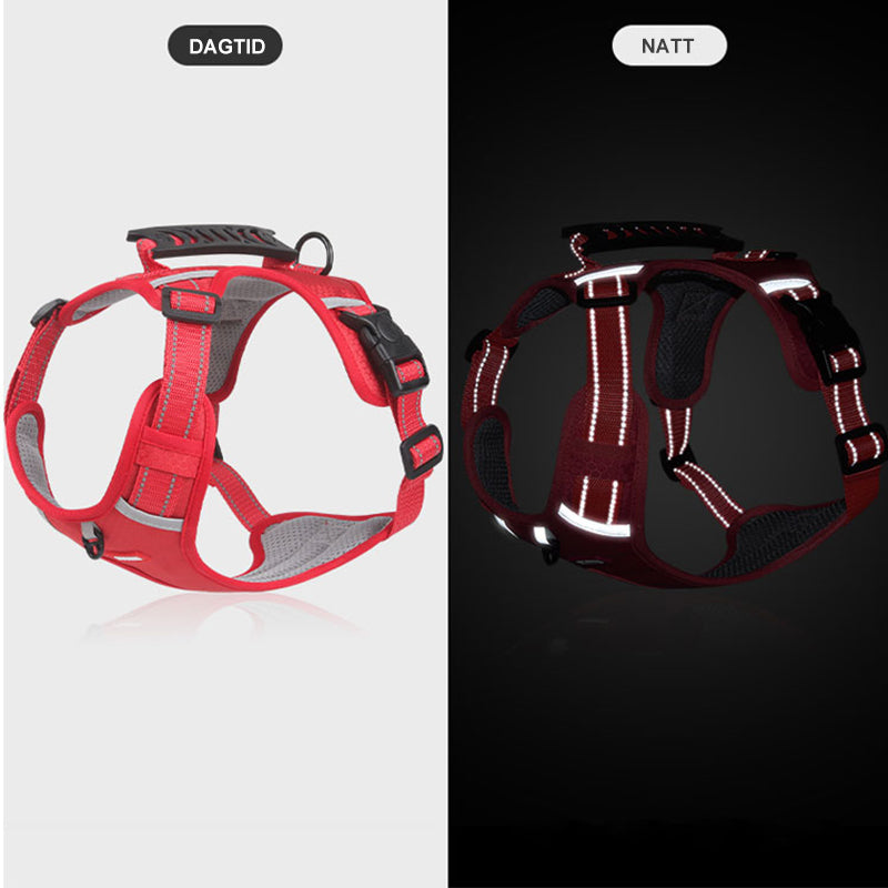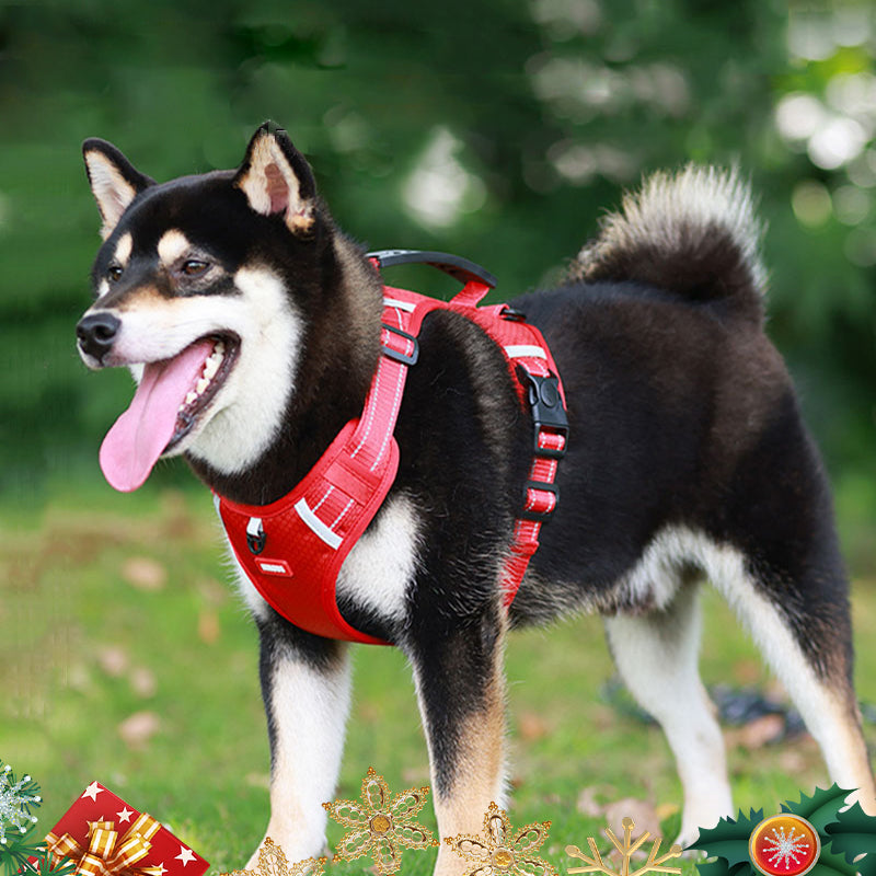 Ez a fényvisszaverő húzásmentes állítható kutyahám kiváló választás kis- és nagy testű kutyák számára, például golden retrieverek, huskyk, labradorok, alaszkai kutyák, német juhászok és akiták számára. Hátulján széles fogantyúval rendelkezik a jobb irányítás érdekében, valamint gyorskioldó csatjával könnyen fel- és levehető. A hám fényvisszaverő anyaggal is rendelkezik, amely jobb láthatóságot biztosít sötétben, valamint tartós, könnyű és lélegző anyagból készült.