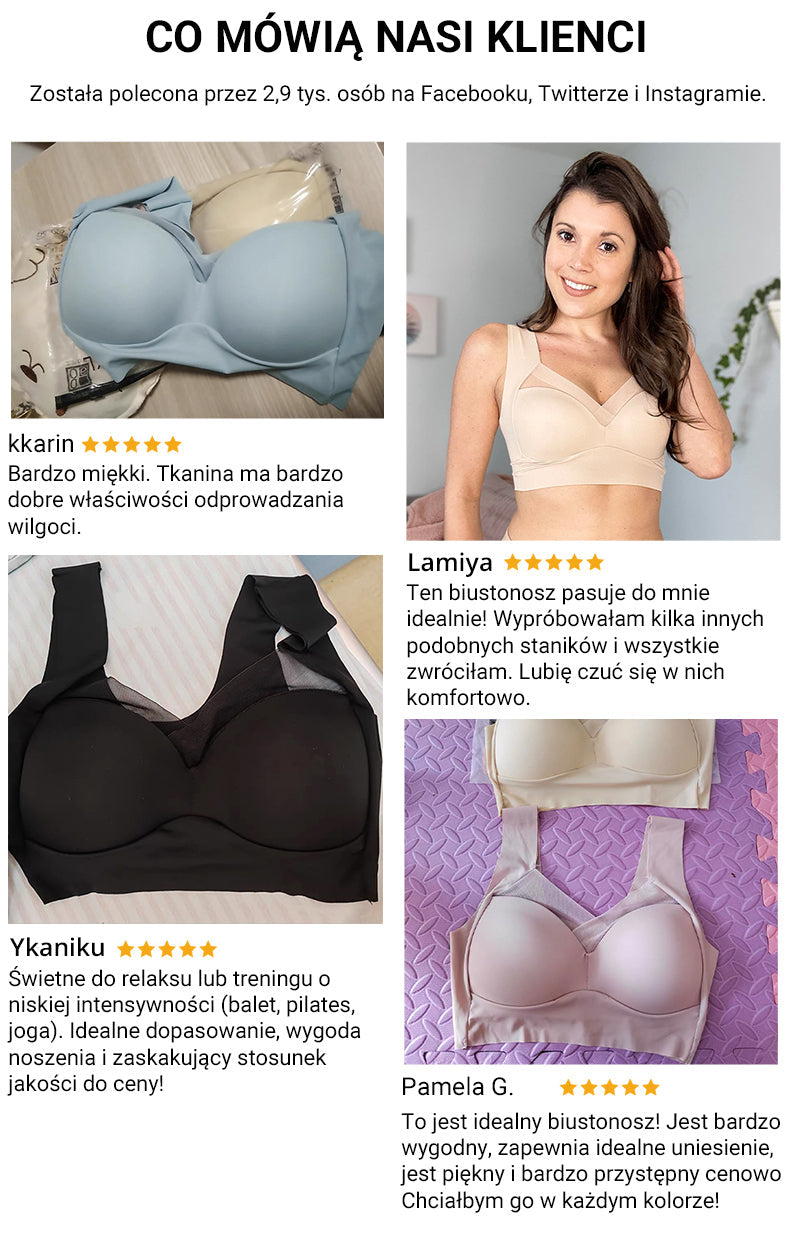 Ten biustonosz oferuje wyjątkowe połączenie komfortu, wsparcia i stylu. Nie zsuwa się, nie przecieka, nie szczypie i nie podrażnia! Pozostaje całkowicie ukryty pod ubraniem.