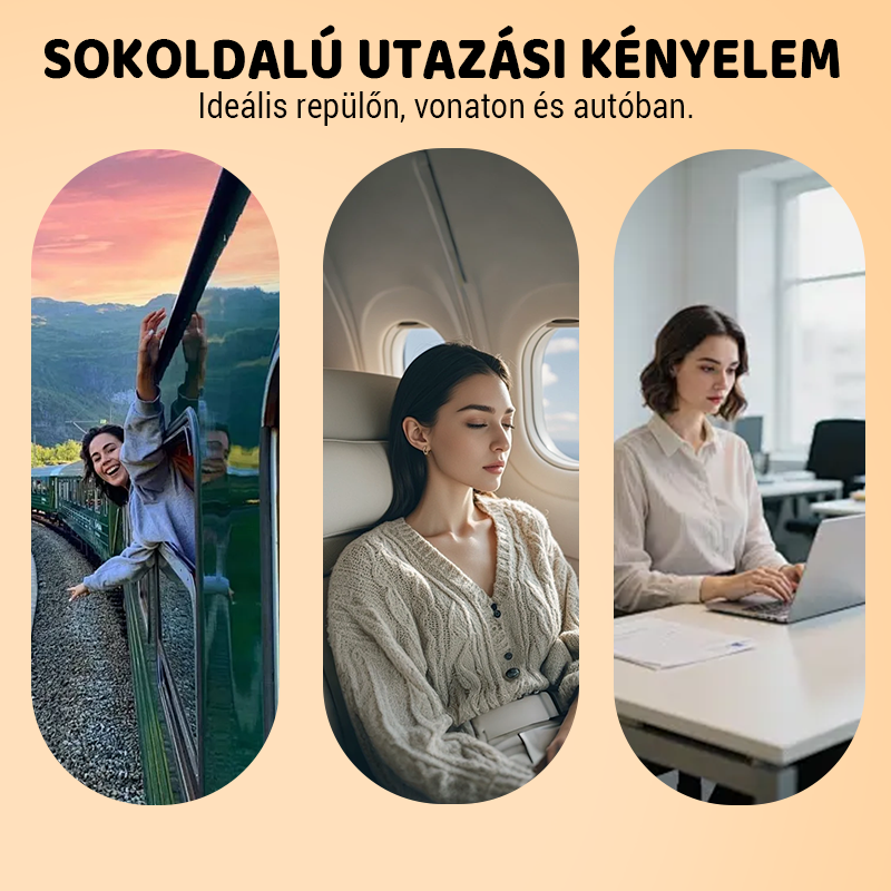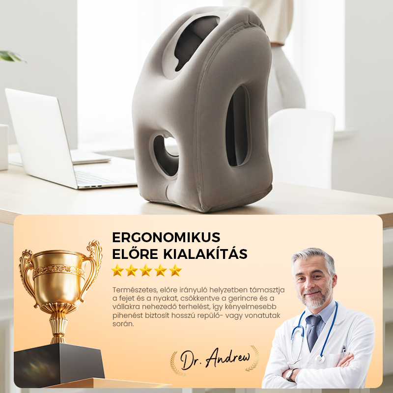 ERGONOMIKUS ELĆRE KIALAKĂTĂS - TermĂ©szetes, elĆre irĂĄnyulĂł helyzetben tĂĄmasztja a fejet Ă©s a nyakat, csökkentve a gerincre Ă©s a vĂĄllakra nehezedĆ terhelĂ©st, Ăgy kĂ©nyelmesebb pihenĂ©st biztosĂt hosszĂș repĂŒlĆ- vagy vonatutak sorĂĄn.