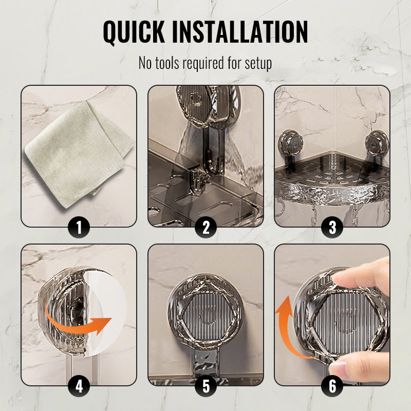 ERŐS SZÍVÓERŐ – Zuhanytartónk rendkívül erős tapadókorongokkal van felszerelve, amelyek sima felületeken is biztos tapadást nyújtanak, így a szükséges tárgyak csúszás és elmozdulás nélkül, furatok fúrása nélkül is biztonságosan tárolhatók.