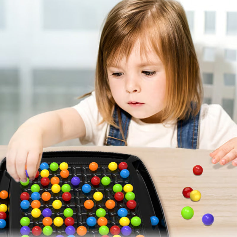 INNOVATÍV JÁTÉKMECHANIKA: A klasszikus játék újragondolása! A játékosok úgy mozgatják a golyókat, hogy elérjenek 2 vagy több azonos színű golyót, majd összegyűjtik azokat. Amikor az összes golyót eltávolították, az az oldal nyer, amelyiknek a legtöbb golyója van.